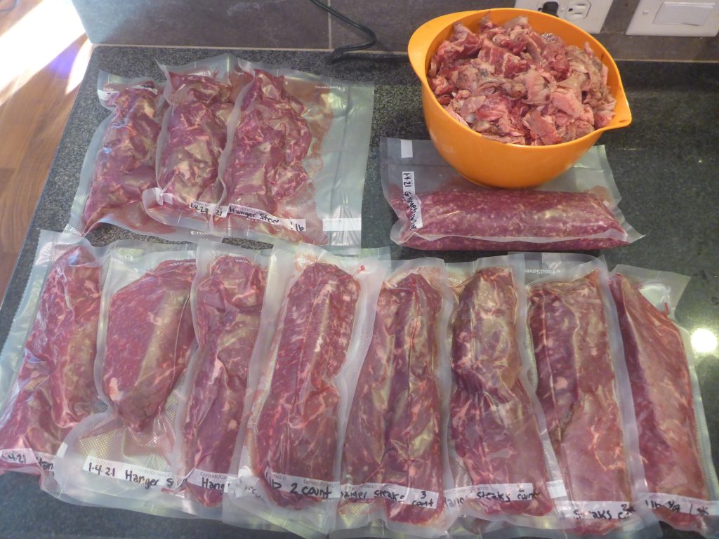 I was finally able to locate a full unbutchered vacuum pack of hanger meat from a local meat market. I had been able to get them at a restaurant supply a few years back, but they changed to a faux-hanger pack–not what I’m looking for.
