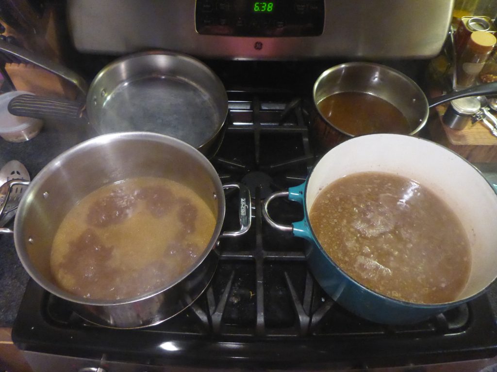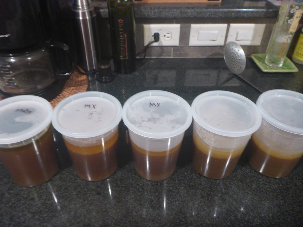 Next I made three different stocks. I made one regular and two Mexican spiced. I put them in the fridge overnight and separated the fat off the top the next day.